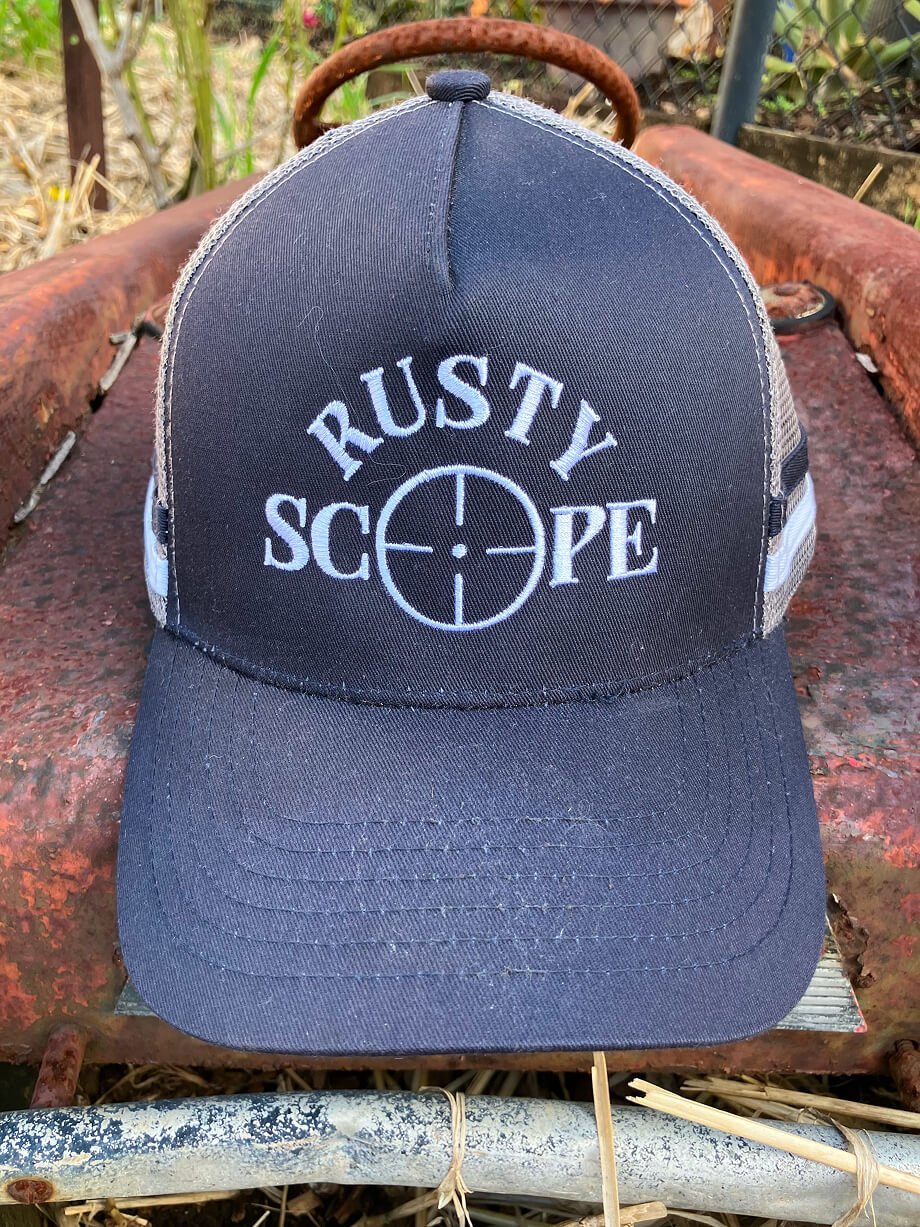Rusty Scope Trucker Hat – Navy/Grey/White
